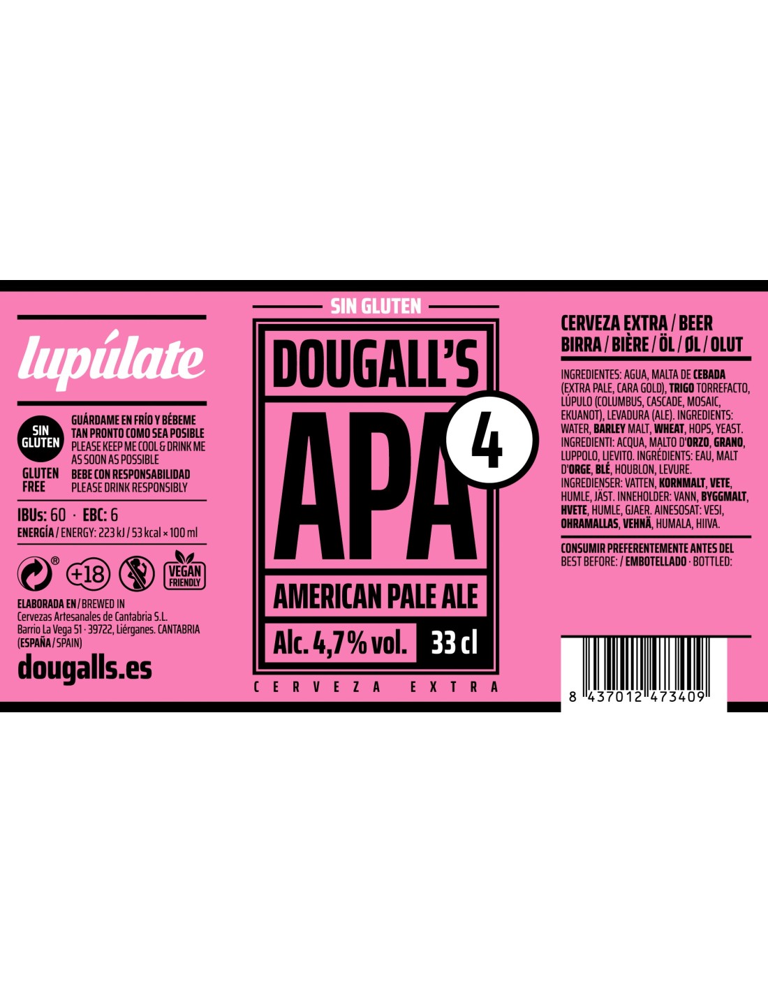 Estilo; AMERICAN PALE ALE , APA . Sin gluten.