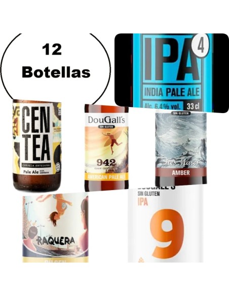 El lote lo compone Indian Pale Ale, ipa 4 e IPA 9. Raquera , Pilsener. Una American Apa , 942 y una Amber ale ,Tres mares .